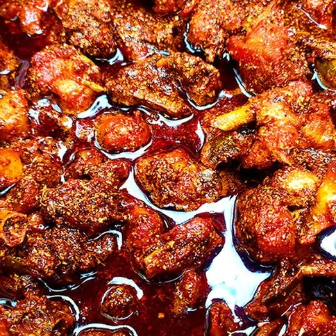 Traditional Andhra-style chicken pickle made with fresh chicken pieces, aromatic spices, and slow-cooked masala. Spicy, juicy, and full of homemade flavor.